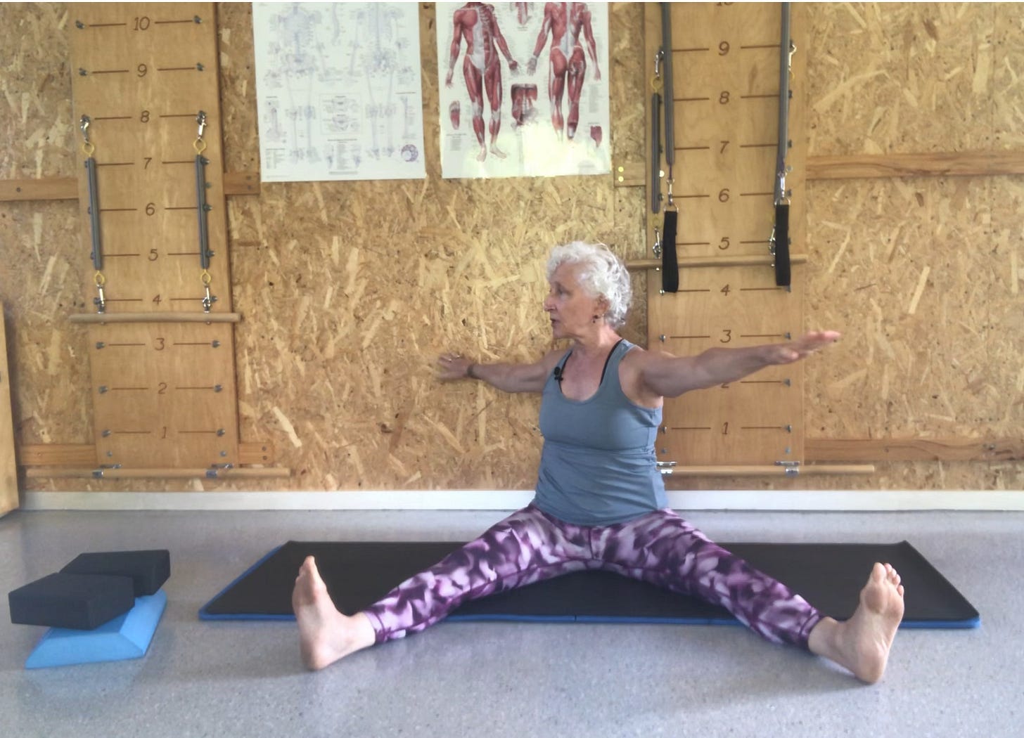 Saw is the perfect exercise to embody this concept. There’s something about sitting up and finding width and height through your limbs that brings this concept home. And if you don’t keep the width and height as you flex the spine while moving through the exercise, you will not get the full benefits Saw can offer.