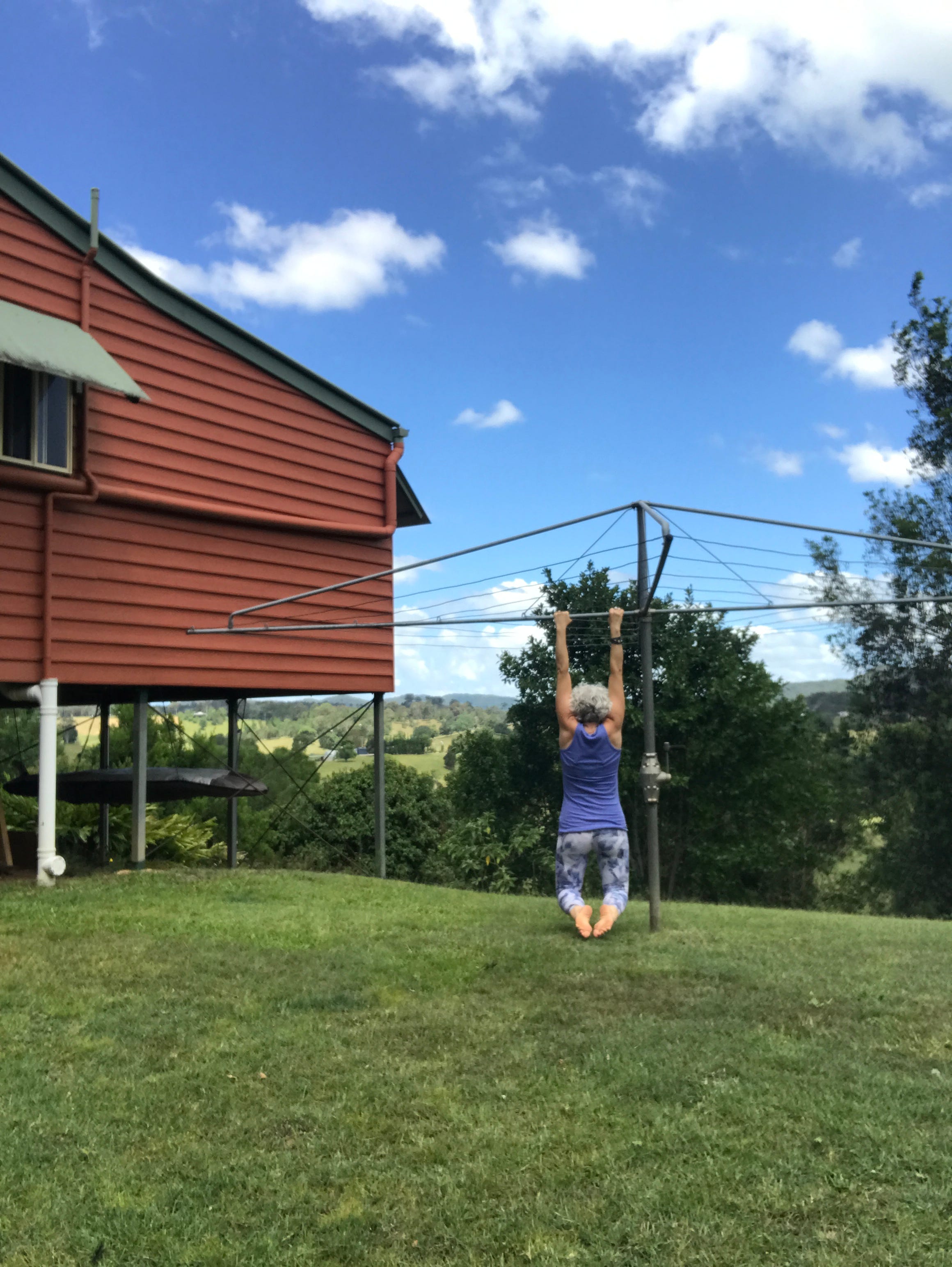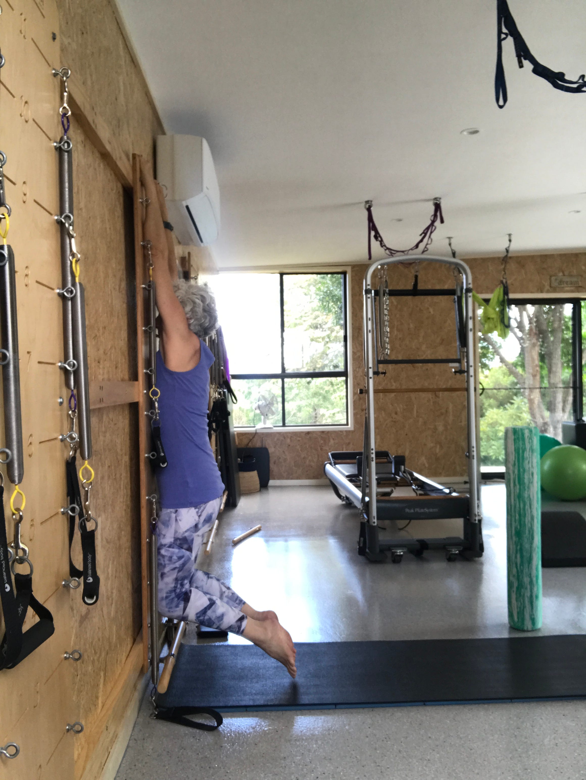 First up, in the Dragonfly Pilates & Movement Schtudio I hang off the top of the Springboard gripping with my fingertips
