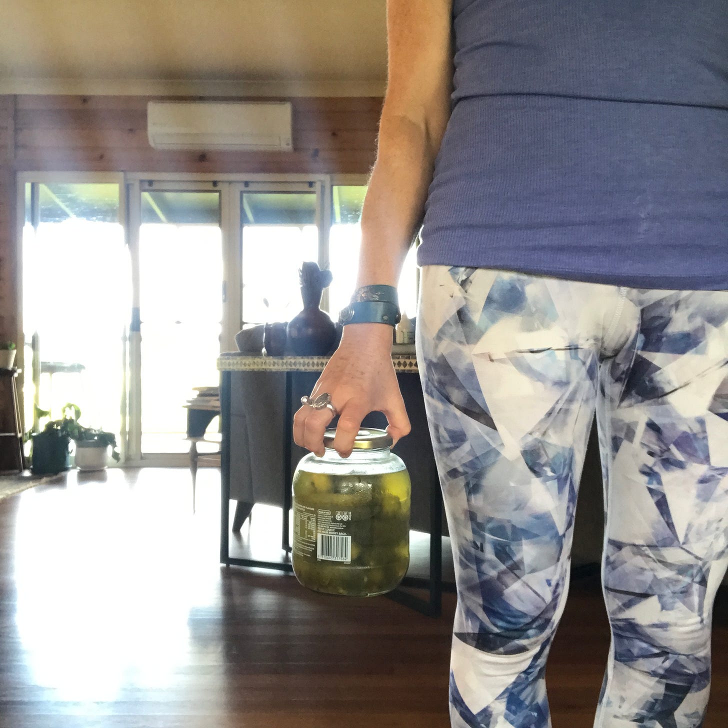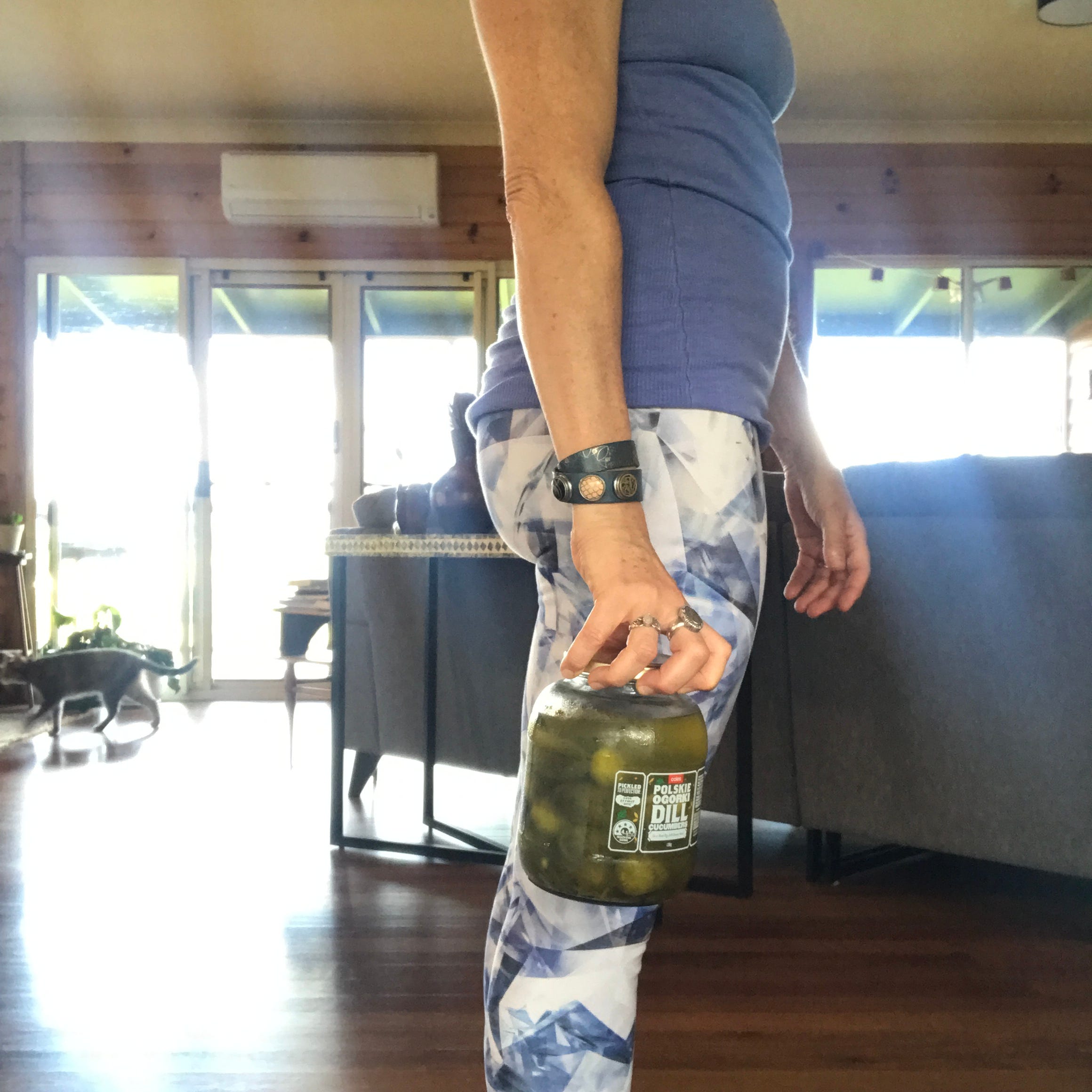 Or use jars of food. These pickles (not mine, am not a fan, they're the hubby's) weigh 1.36kg which is about 3lbs (actually 2.998287)yes that's my cat Tish in the background😻