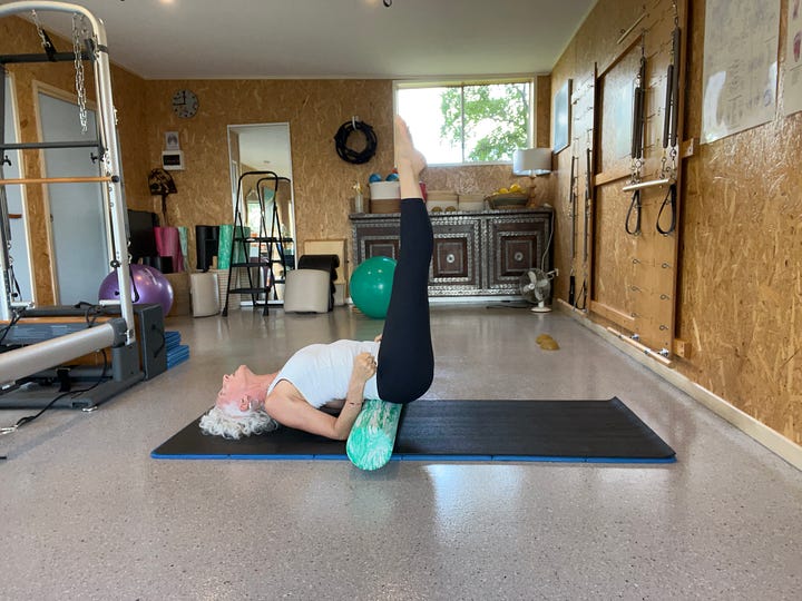 The crazy last one is a bit of an adaptation of the Reverse Headstand from the advanced Reformer (most Pilates teacher trainings do not include it in their curriculum, i.e. instructors are not taught it) and a yoga fish pose (Matsyasana)