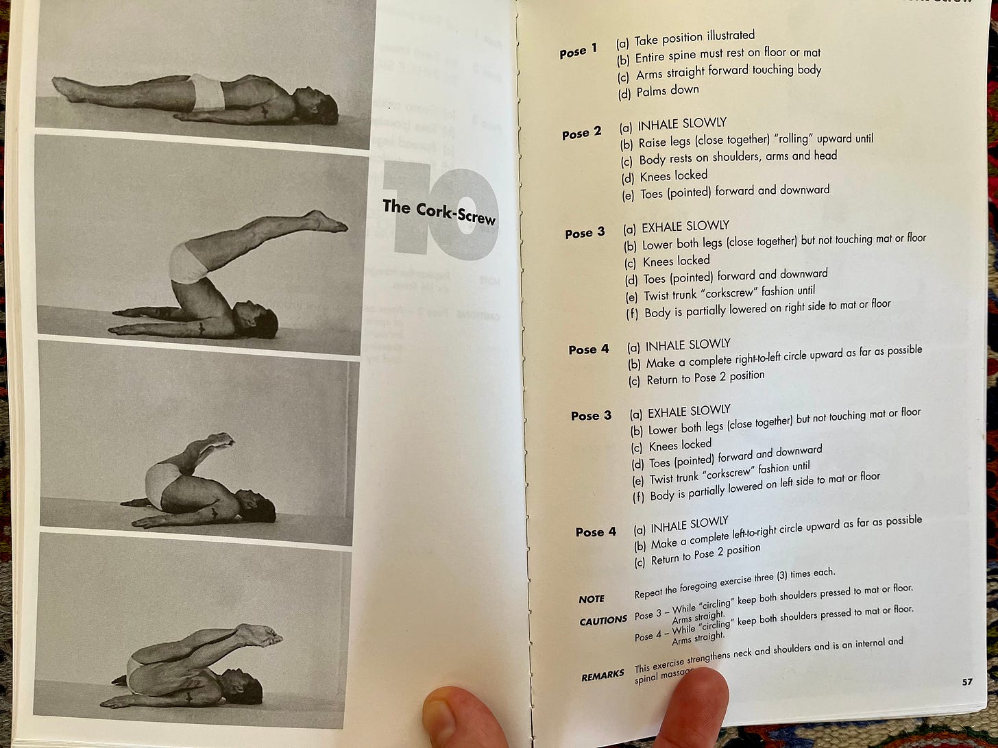 Roll Up (#2) then both Rolling Like A Ball (#5) & Open Leg Rocker (#9): These three exercises train you how to roll smoothly through your spine. Finding the control to fight gravity’s pull on your pelvis is definitely one of Corkscrew’s demands.