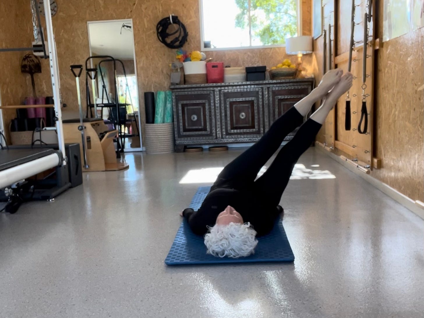 The Hundred (#1): one of the goals of the Hundred is to figure out how to hold up the weight of the legs from the deep trunk muscles and hips. You’ll use this skill in Corkscrew.