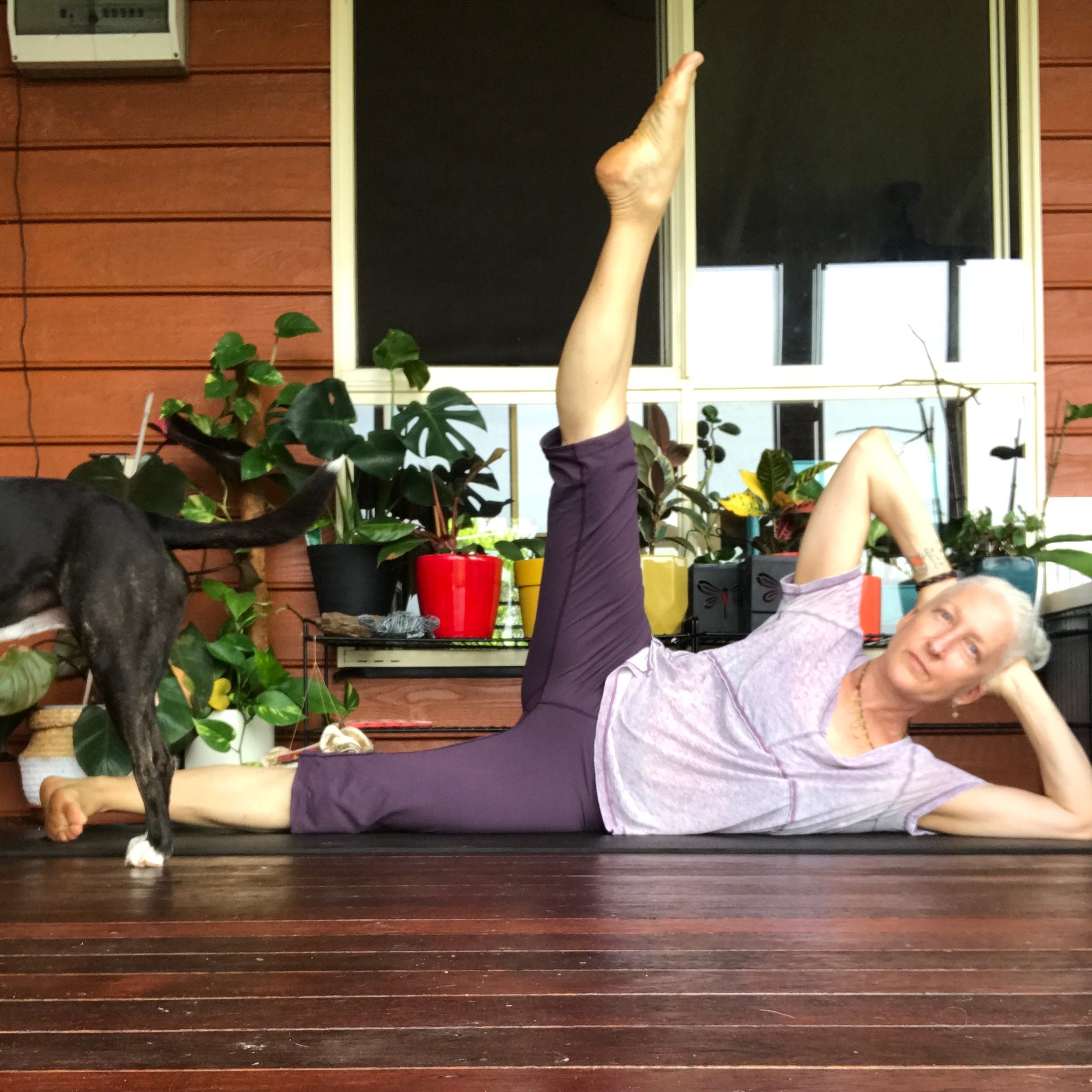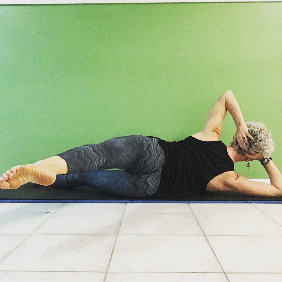 the less of us on the mat (i.e. side lying versus on our backs supine) the more we have to create our own stability