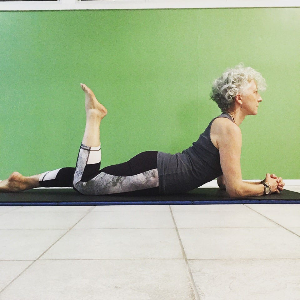 The upper back and torso are very active in Single Leg Kick as you’re trying to lift your chest and pull it forward against the length of the legs reaching back behind you. Oppositional energy is key to keeping length through the front and back of the body, stretching, stretching, and stretching into tensile strength - repeat after me: ‘length & strength, length & strength, length & strength’.