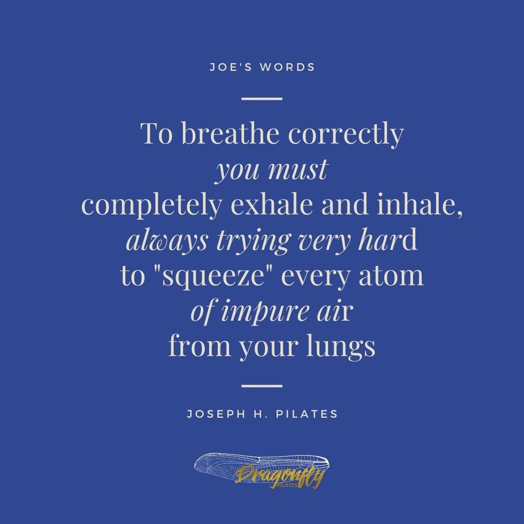 Feel like a cup of Joe? Instead how about a bit of Joe Pilates? This type of dynamic breathing wakes us up and fires us up. The double exhale in the Spine Twist is a teeny version of what I know as coffee breathing. (which I've read is based on a Sufi breathing technique)