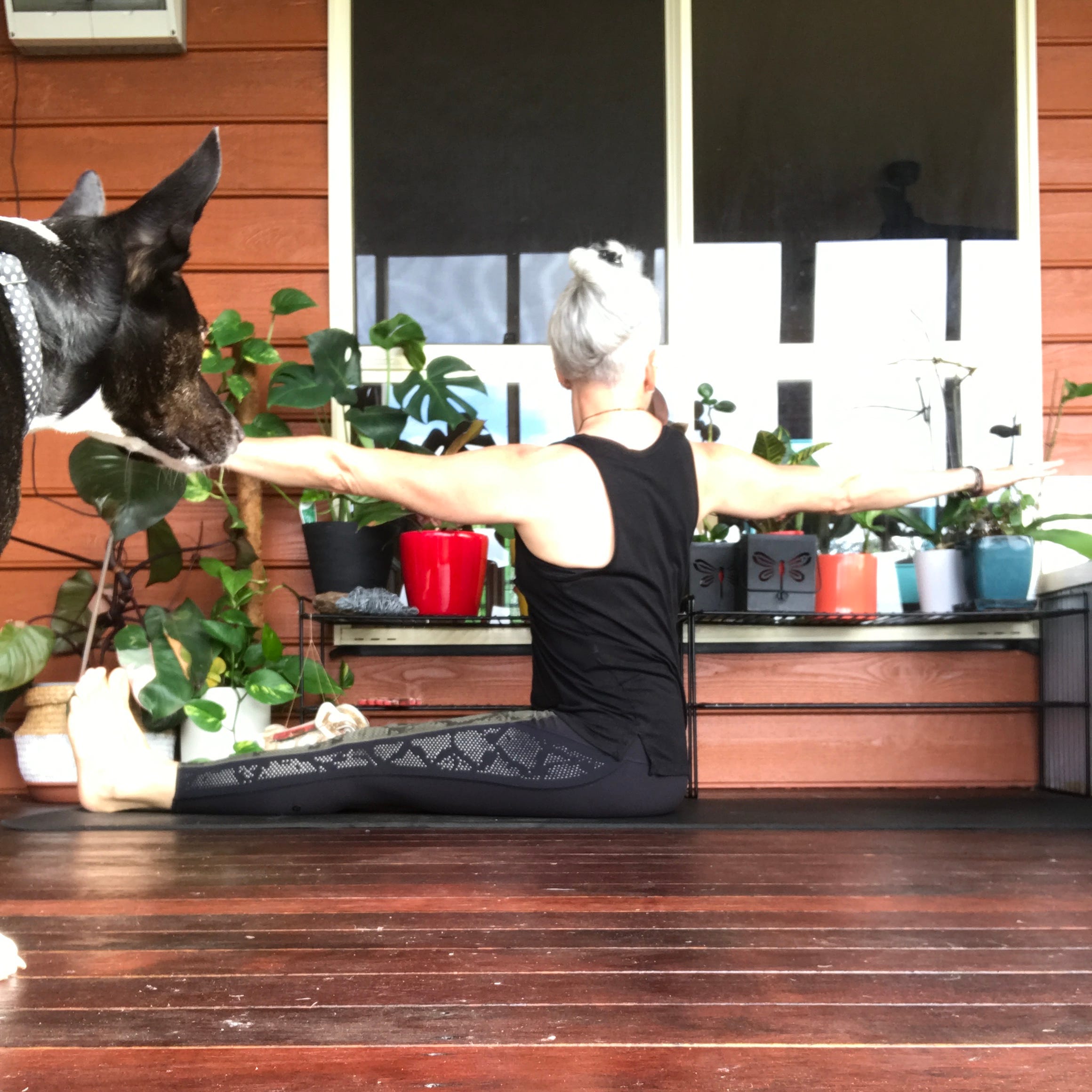Inhale to lift the spine even higher staying centred, eye-line is level, legs are strong and energised.